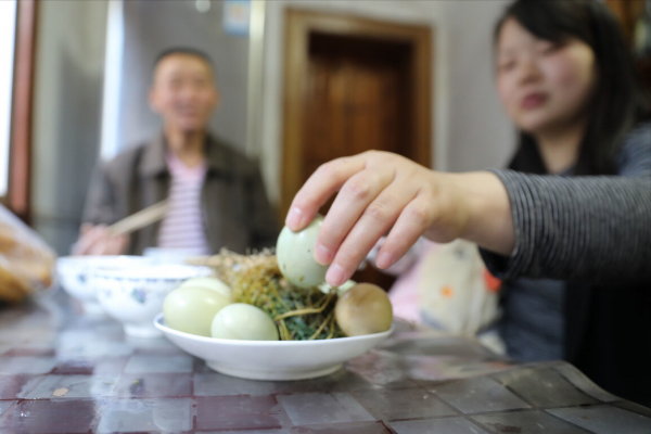 古时候有"临川浮卵"的说法,也就是把煮熟的鸡蛋放入到河水中,鸡蛋漂到谁的跟前就归谁。鸡蛋象征着生命与生育,是对妇女的一种祝福。