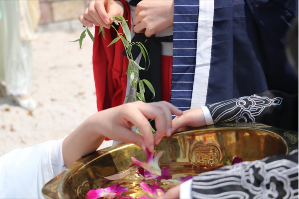说得通俗一点,就是赶走身边的晦气,去掉灾病,以前古人都是通过泡温泉的方式,或者是在河边沐浴,用兰草洗身,也就是说去水边洗涤一番。所谓"禊",即"洁",因此"祓禊"就是通过自洁而消弥致病因素的一种仪式。