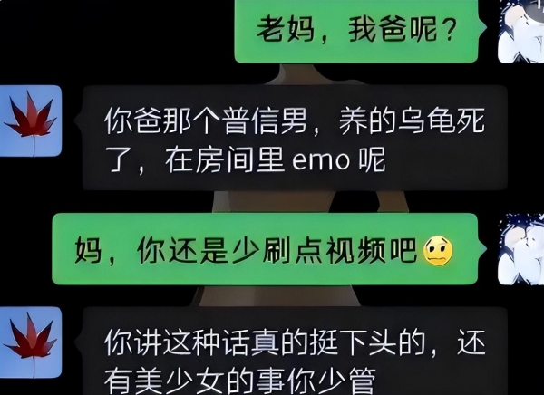 年轻家长与大学生之间的代沟并不深,反而还要比学生的"网络冲浪"速度要更快,而在笔者看来,打是亲骂是爱,大学生与家长之间的聊天看似是"互怼",实际也是另一种方式的凡尔赛罢了,这种交流方式也很值得借鉴并效仿,但具体也要看学生与家长的相处模式,可别画虎不成反类犬!