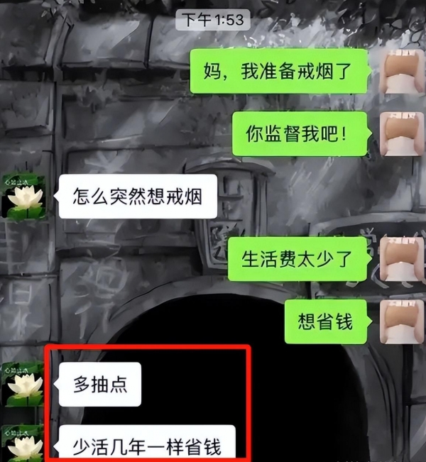其实家长思想变得开放是一件好事,能够更好的懂得学生的内心与状态,而不是张嘴就是教育与说教,时不时的"心灵鸡汤"等,而且还能懂得学生的"言外之意",一句"多抽点,少活几年一样省钱",估计也是看透了学生的"小把戏",果然姜还是老的辣呀!