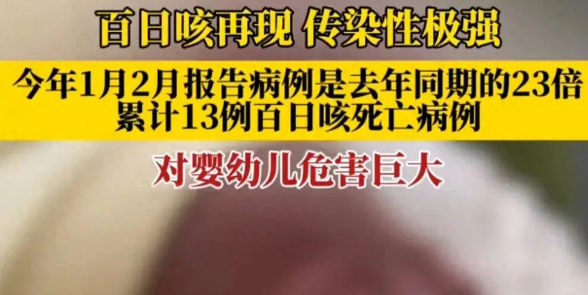 随着新一年的到来,令人倍感惊讶的消息传来--百日咳再度爆发,传染性极强,今年1月2月报告病例是去年同期的23倍,累计13例百日咳死亡病例。这一消息对婴幼儿的危害极大,火速送上热搜。