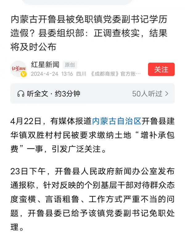 自考、函授是可以解释他的文凭问题。就是他怎么进入公务员队伍的,我是真不能理解。对于,内蒙古开鲁县被免职镇党委副书记纪云浩学历造假?