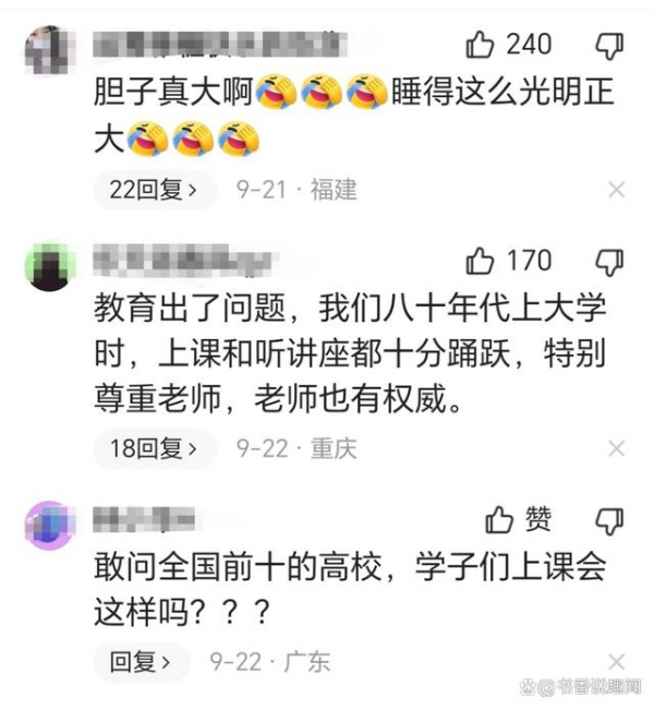 网友说:"教育出了问题,我们80年代上大学时,上课和听讲座都十分踊跃,特别尊重老师,老师也有权威。"