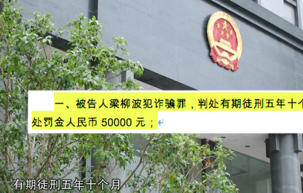 粱柳波被判有期徒刑五年十个月,罚金50000元。