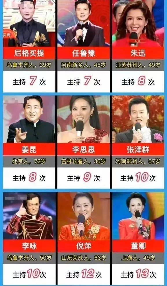 从2023年春节主持人公布开始。大家发现,男主持还是撒贝宁、尼格买提和任鲁豫。但女主持人已经换了一轮,不再是大家熟悉的李思思、董卿、周涛等。