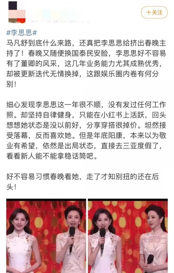 所以有网友也为李思思"打抱不平",觉得央视这样做"不地道",让李思思在康复后依旧没能获得春晚的机会。