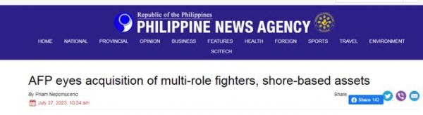 比如菲律宾媒体7月时的这篇文章称,"菲律宾武装部队将采购多用途战机与岸基资产"。