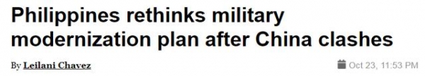 "与中国冲突后,菲律宾重新考虑军事现代化计划",上述表述,是美国《防务新闻》23日一篇报道菲律宾军事现代化计划的文章的标题。