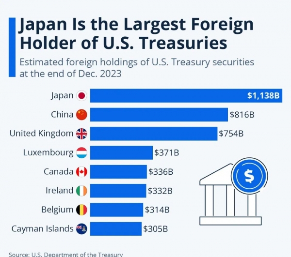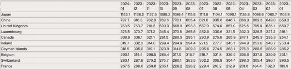 据美国财政部3月20日最新公布的国际资本流动报告显示,美债官方数据会有两个月的延迟,2024年1月,中国大幅度抛售了186亿美债,打破了此前连续两个月增持美债的状态,使得持仓回落至7977亿美元,创下2009年6月以来的十四年低谷,目前,中国仍为美债第二大持有者。