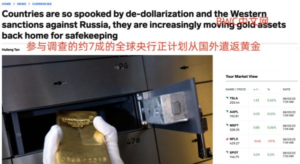 另外美国金融网站ZeroHedge在有关"许多国家将存在海外的黄金运回国"的跟进报道也在印证上述现象,这意味着全球央行对美国货币和美国金融系统信用的信心出现下降。