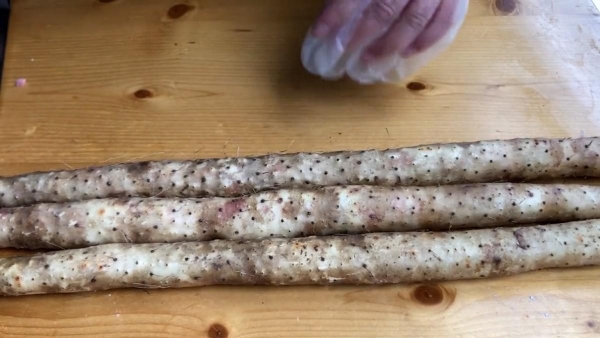 1.选择铁棍山药,去掉皮戴上一次性手套,洗净山药并切成长段,放入碗中备用。在锅中加入清水,加入几小勺白糖,然后将山药放入锅中。开火煮开,加糖,让山药入味,煮五分钟,煮至七分熟即可。捞出来沥干水分备用。