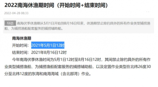 中国实行的"南海休鱼令",是从1999年就开始实施的。