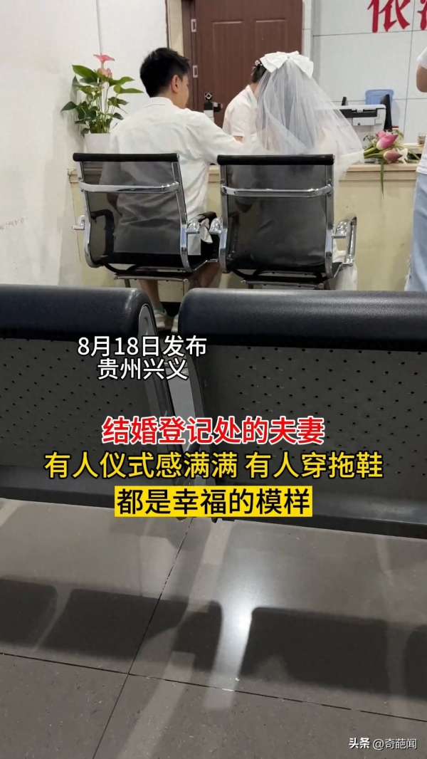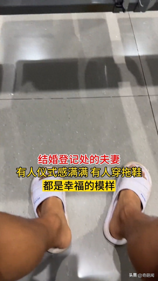 只见视频画面中一男子和未婚妻去民政局领证,看到自己和其他情侣的差距后顿时乐了,其他情侣都是男方穿着正装女方带着头纱,显然十分在意领证的这个时刻,