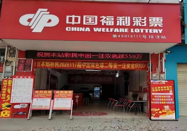 等到了彩票站,他看到门口早已经挂上了横幅,上面写着: