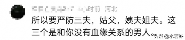 所以要严防三夫,姑父,姨夫姐夫。这三个是和你没有血缘关系的男人。