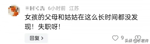 有江苏网友说,女孩的父母和姑姑在这么长时间都没发现,失职呀!