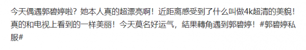 最近,有网友晒出了偶遇郭碧婷并和郭碧婷合影了的合照,还发文感慨了一番郭碧婷的美貌。