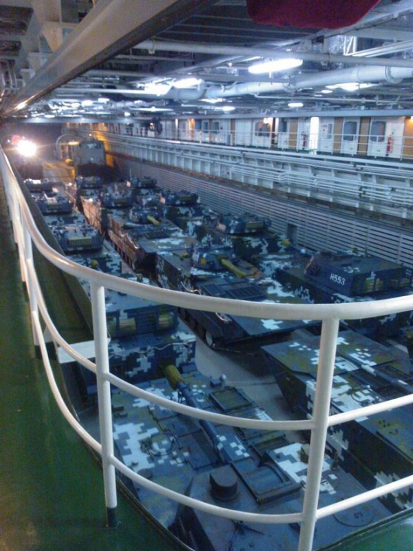 中国当然不会容忍仁爱礁的情况再次发生,已经开始做"动手"的准备。西方卫星接连发现了不寻常的情况:中国海军一艘2万吨级的071型船坞登陆舰抵达仙宾礁海域,距离礁盘几十公里远,这可以说是对菲律宾方面非常严厉的警告了。071型船坞登陆舰排水量两万多吨,除了能够搭载数架直升机外,船底坞舱内还可以搭载大量的两栖登陆战车、快艇或者数艘气垫船。仙宾礁的礁盘内水深较浅,不适合071这样的大型战舰驶入,但是071搭载的这些装备恰恰很适合用于对菲律宾船只采取快速突击行动。以071的实力,菲方的那一两艘海警船是根本没有抵抗余地的。