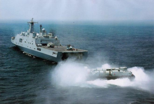 (071型船坞登陆舰可搭载数架直升机和大型气垫船)