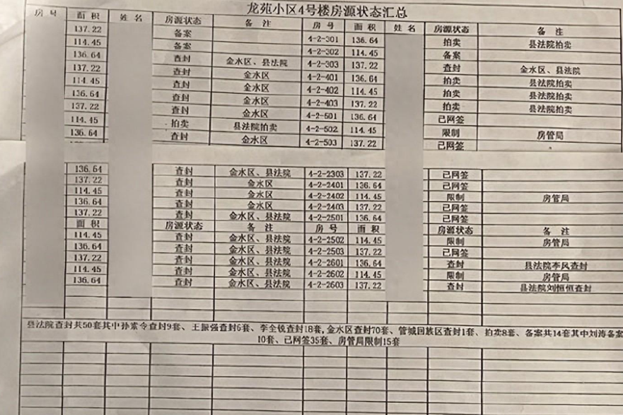 龙苑小区4号楼房源状态汇总