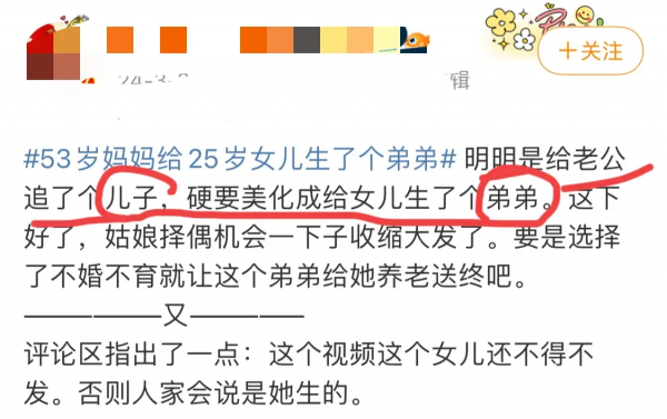 网友表示应该重新定义这一新闻,应该将其命名为"生女25年后,53岁老妻为丈夫诞下幼子"。