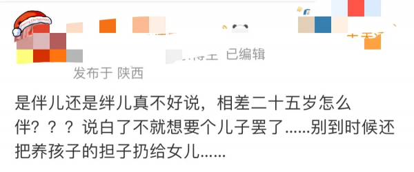 还有网友考虑的更为现实,当这个儿子成年后,父母已经7,8十岁了。到时照顾老人,供弟弟上大学,家庭全部的重担都落在这个已经快59岁的大女儿身上,真的不好说是"伴儿"还是"绊"。
