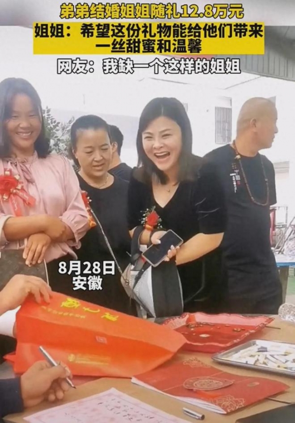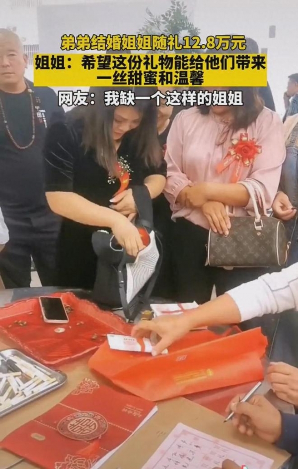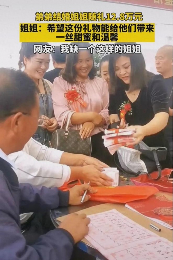 近日,一段弟弟结婚姐姐,随礼12.8万元的视频引发关注。网友忍不住拷问,姐夫知道吗?