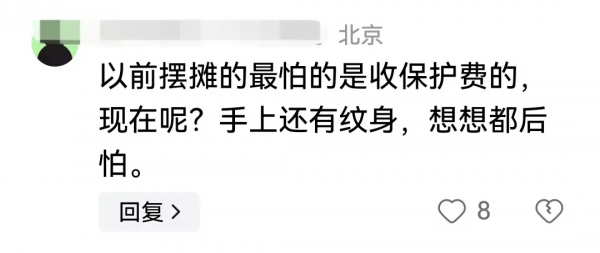 有网友称,以前摆摊的最怕的是收保护费的,现在呢,手上还有纹身,想想都后怕。