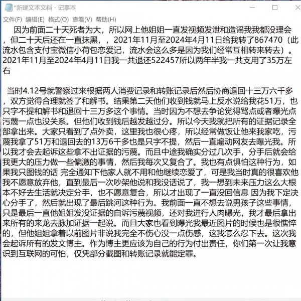 对比,女生的回应是"已在派出所调解,归还了13万6千多,余下的35万是恋爱期间共同消费"。