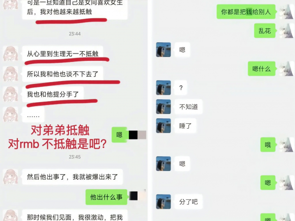 对于事情的是非对错,小编在此不予评价。只是根据目前男孩胖猫姐姐发布出来的聊天记录来看,这段恋爱却并没有多少"爱",更多的是"钱"。
