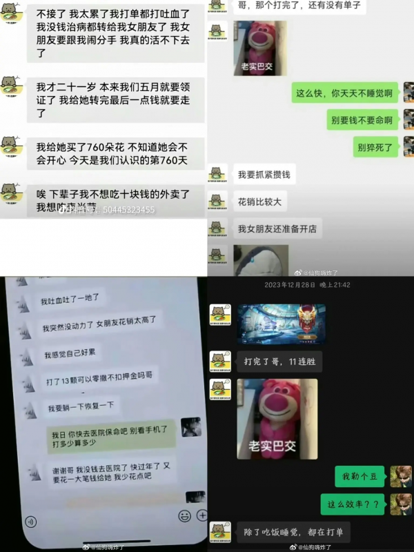 对于一个21岁的男孩,是要多拼命,才能在2年时间内,靠游戏打单赚51万。这都是用身体换来的。