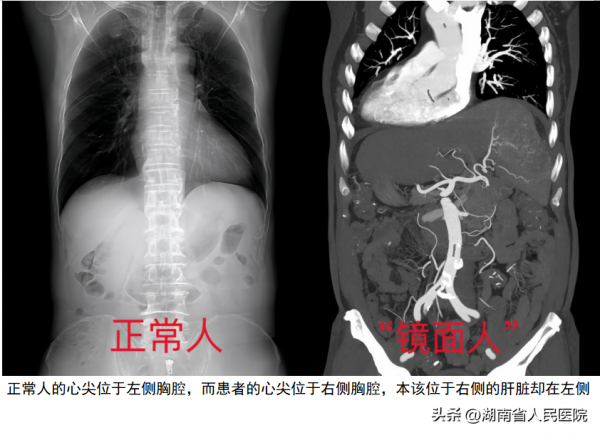 刘昌军提醒,"镜面人"虽然内脏全部错位,但只是位置发生变化,生理功能基本与常人一样,对健康与生活没有太大影响。但部分"镜面人"合并其他脏器结构异常或基因疾病,则可能伴有相应症状。因此,"镜面人"一旦出现身体不适,应引起警惕及时就医,并告知医务人员自身特殊情况,以