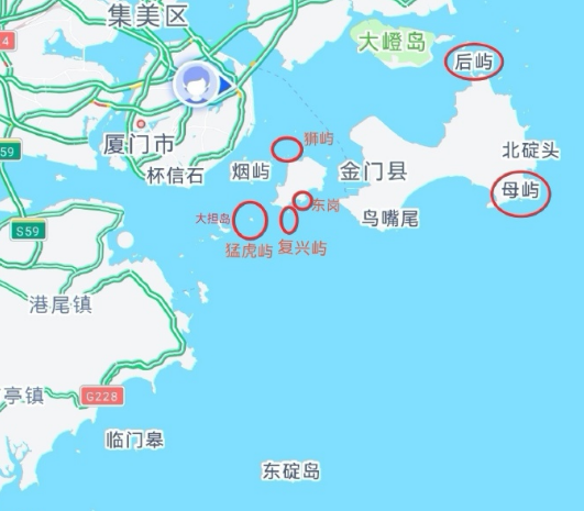 台金门守军此次实弹射击训练涉及到了厦金海域周边6处海域,包含金门群岛中的后屿、母屿、狮屿、东岗、猛虎屿、复兴屿。