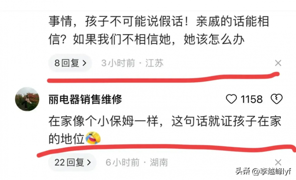 还有网友表示,亲戚说的话也不一定是真的,大家不相信她的话,她还能怎么办?