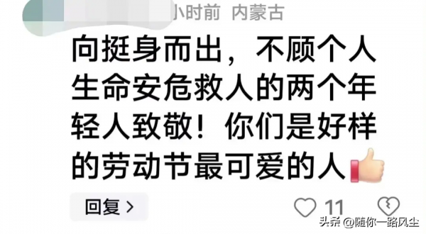 要向挺身而出不顾个人生命安危的两个年轻人致敬!你们是好样的,是劳动节中最可爱的人。
