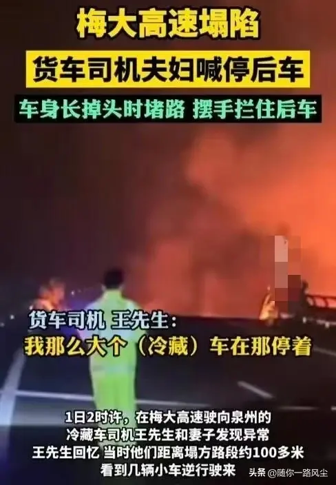 发生在梅大高速还有∶"冷藏大货车司机夫妇横路拦车",救下了一台又一台车。