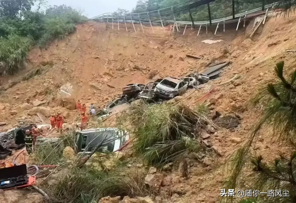 这次塌方事故,坑度深为四五。米,长达17.9米,面积184平米。直接导致23辆车陷落大坑,造成48人遇难,重伤30人。
