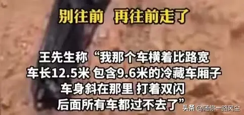 王司机是开冷藏大货车的,他的车身长达12.5米,发现前方路塌了之后,王司机果断将车横停在路中央,阻止后面的车辆前行。