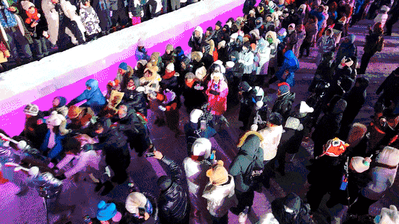 今年全新亮相的冰雪大世界"人气王"--超级冰滑梯,滑道从8条增加到14条,能接待的游客更多,游客玩得也更爽。特别有爱的一点是,冰滑梯最长滑道521米,谐音"我爱你",正好和冰雪大世界另一个爱情主题打卡网红项目"雪花摩天轮"相互呼应。