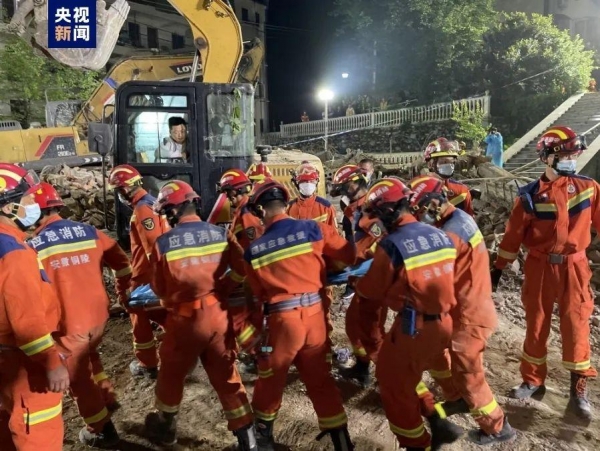 目前救援现场共有200余名工作人员和11台大型设备(其中4台挖机、3台吊车以及各种电力设备、供水设备)。