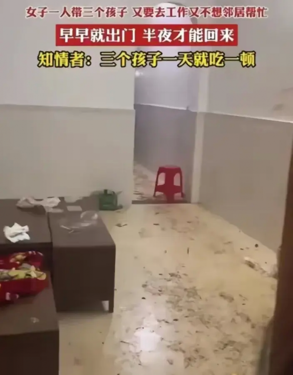 "一个人拉扯3个孩子又要去工作,早早出门半夜才回来,又不想邻居帮助。。。"