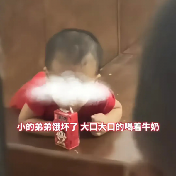 孩子实在是饿得不行了,拿到送来的牛奶后,狼吞虎咽就喝完了。