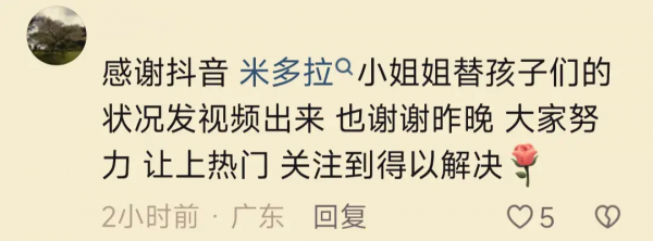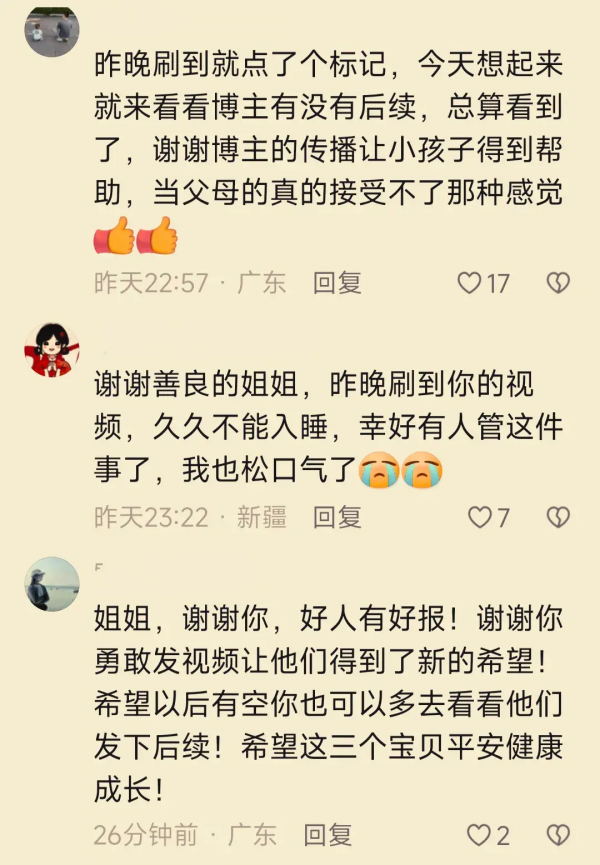 看到孩子们有了最新的好消息,不幸的一家得到了官方如此程度的重视,大家纷纷向视频原作者表达感慨。