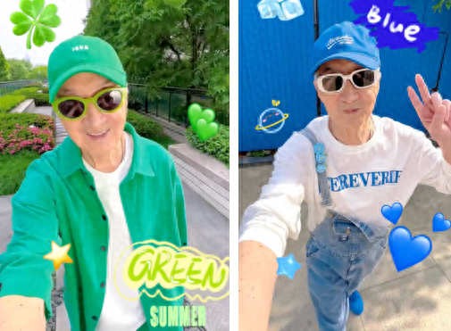 不过,"多巴胺穿搭"并不只是甜妹专属,一位86岁的穿搭博主@康康和爷爷 也玩起了多巴胺穿搭,绿色衬衫配白T,果绿色全框墨镜非常跳脱。