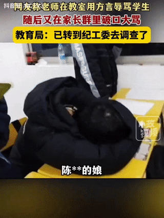"这个老师,当时可能是比较急躁,我们书记已经狠狠批评过她这个事情了,现在目前已经不适合进入教室教育了,已经安排了其他事情给她"