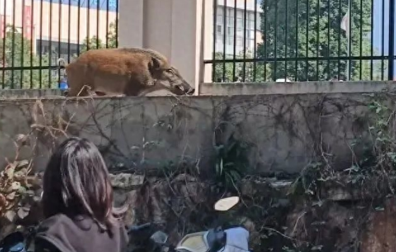 10月16日,安庆师范大学校园内惊现一头野猪!据现场目击者介绍,当时这头野猪在校园围墙下来回徘徊,受到惊吓后突然冲进校园,跑进了树林。