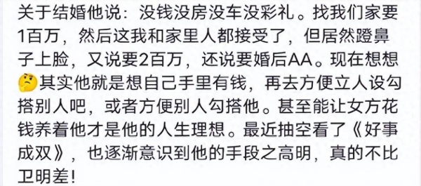 此外,梁某还称林品在两人以结婚为目的的交往中隐瞒隐疾,并称自己结婚没钱没房没车没彩礼,向女方家索要100万嫁妆,后又加至200万,恋爱期间多次花女方的钱。