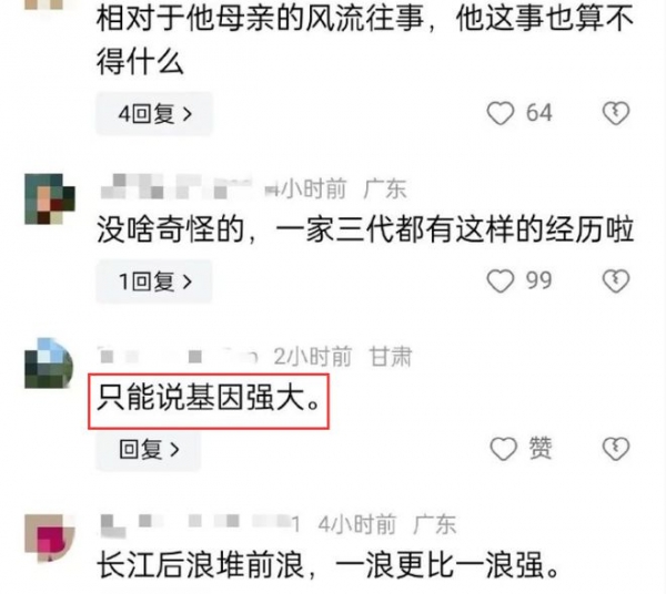 爆料一出,网友也是议论纷纷。但大都带着调侃的口吻,直言谢振轩的爷爷和父亲都有过"忘年恋",谢振轩不过是"长江后浪推前浪,一浪更比一浪强"。