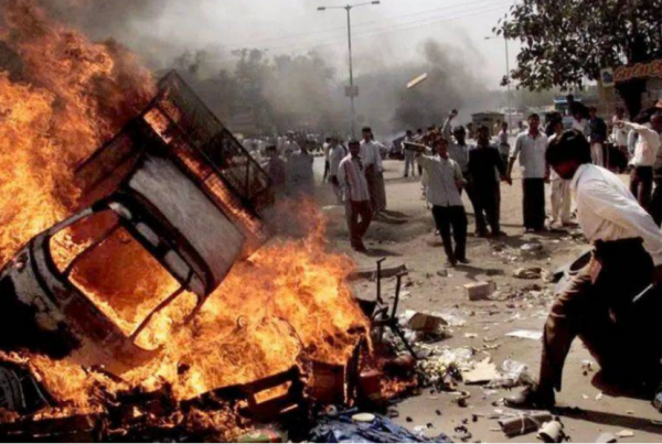 这次暴乱起因于一辆火车车厢在火车站被纵火,导致59名印度教朝圣者死亡,其中大多数是喀什米尔穆斯林。这一事件随后引发了印度教徒和穆斯林之间的激烈冲突。