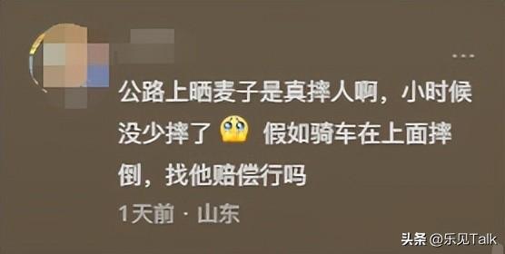 这位网友表以前有人在路上晒麦子时,自己经常因为麦子摔跤。